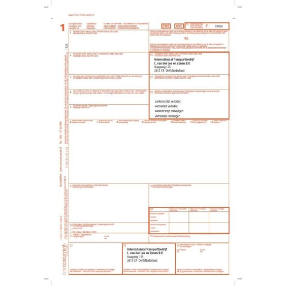 Voor elke beroepschauffeur onderweg, is de voorbedrukte CMR vrachtbrief de meest herkenbare vrachtbrief. Altijd bij de hand om de zending te voorzien van een handgeschreven CMR vrachtbrief. De vrachtbrief voorzien van uw eigen indruk, voorkomt veel schrijfwerk, u maakt bijvoorbeeld een standaard voorbehoud, de CMR kan worden voorzien van overzichtelijke schema's en uw eigen naam en logo is natuurlijk een extra pré op de vrachtbrief.