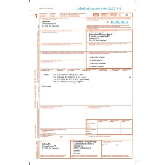 Voor elke beroepschauffeur onderweg, is de voorbedrukte CMR vrachtbrief de meest herkenbare vrachtbrief. Altijd bij de hand om de zending te voorzien van een handgeschreven CMR vrachtbrief. De vrachtbrief voorzien van uw eigen indruk, voorkomt veel schrijfwerk, u maakt bijvoorbeeld een standaard voorbehoud, de CMR kan worden voorzien van overzichtelijke schema's en uw eigen naam en logo is natuurlijk een extra pré op de vrachtbrief.