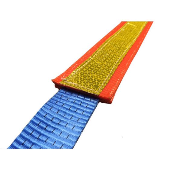 Housse de protection orange robuste en polyester de 75 cm avec une bande réfléchissante cousue de 50 mm de large. Cette housse de protection en sangle est idéale pour les chargements de remorques ou de remorques ouvertes. Grâce à cette housse de protection facile à appliquer, la durée de vie des sangles est considérablement prolongée et la réflexion offre une sécurité supplémentaire dans l'obscurité.