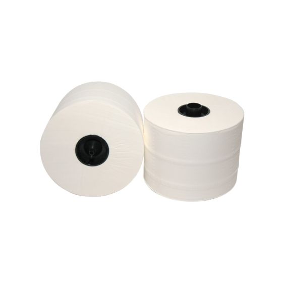 Ce papier toilette est de la marque Euro Products. Le rouleau de papier toilette contient des bouchons en plastique sur le côté. Ces rouleaux système sont également appelés rouleaux à bouchon et sont utilisés en combinaison avec un distributeur. Deux rouleaux superposés ou juxtaposés permettent aux utilisateurs de ne jamais manquer de papier. Le rouleau de papier hygiénique est doté d'un rail de guidage réglable, ce qui permet de ralentir le rouleau. Cela permet une consommation économique et est donc idéal pour les endroits où le nombre de visiteurs par jour est élevé. Le papier hygiénique porte l'étiquette ECO. La capacité d'un rouleau est de 65 mètres. Le diamètre du rouleau est de 13 cm. Un rouleau contient 565 feuilles. Un paquet contient 36 rouleaux.