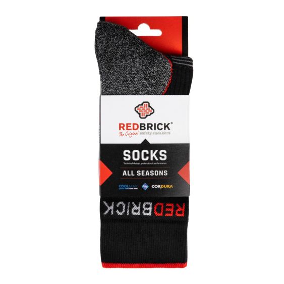 De Redbrick All Season sokken bieden optimale bescherming en zijn zeer comfortabel. Deze sokken zijn gemaakt van ander andere CoolMax en Cordura, deze materialen worden ook gebruikt in de wandelsport. Ook bevatten de sokken ventilatiekanalen die over de wreef lopen en over de tenen lopen geen naden wat zorgt voor extra comfort. De sokken zijn voorzien van schokabsorptie in de hak en beschikken over een perfecte pasvorm, wat ook weer bijdraagt aan het comfort van de sok.