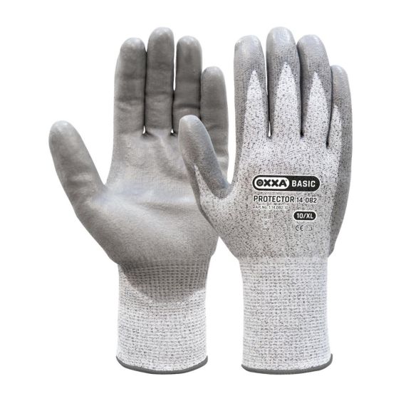 De werkhandschoen OXXA® Protector 14-082 biedt een uitstekende balans tussen snijbescherming, flexibiliteit en draagcomfort. Deze naadloos rondgebreide handschoen is voorzien van een HPPE/nylon/spandex drager (13 gauge) en heeft een PU-coating op handpalm en vingers voor een betrouwbare grip op droge ondergronden. Dankzij de snijbeschermingsklasse B volgens normering EN 388:2016 (4X42B) is deze handschoen geschikt voor werkzaamheden waarbij een verhoogd risico op snijwonden aanwezig is. Tegelijkertijd biedt hij een hoge mate van vingergevoeligheid, waardoor je nauwkeurig en veilig kunt werken.